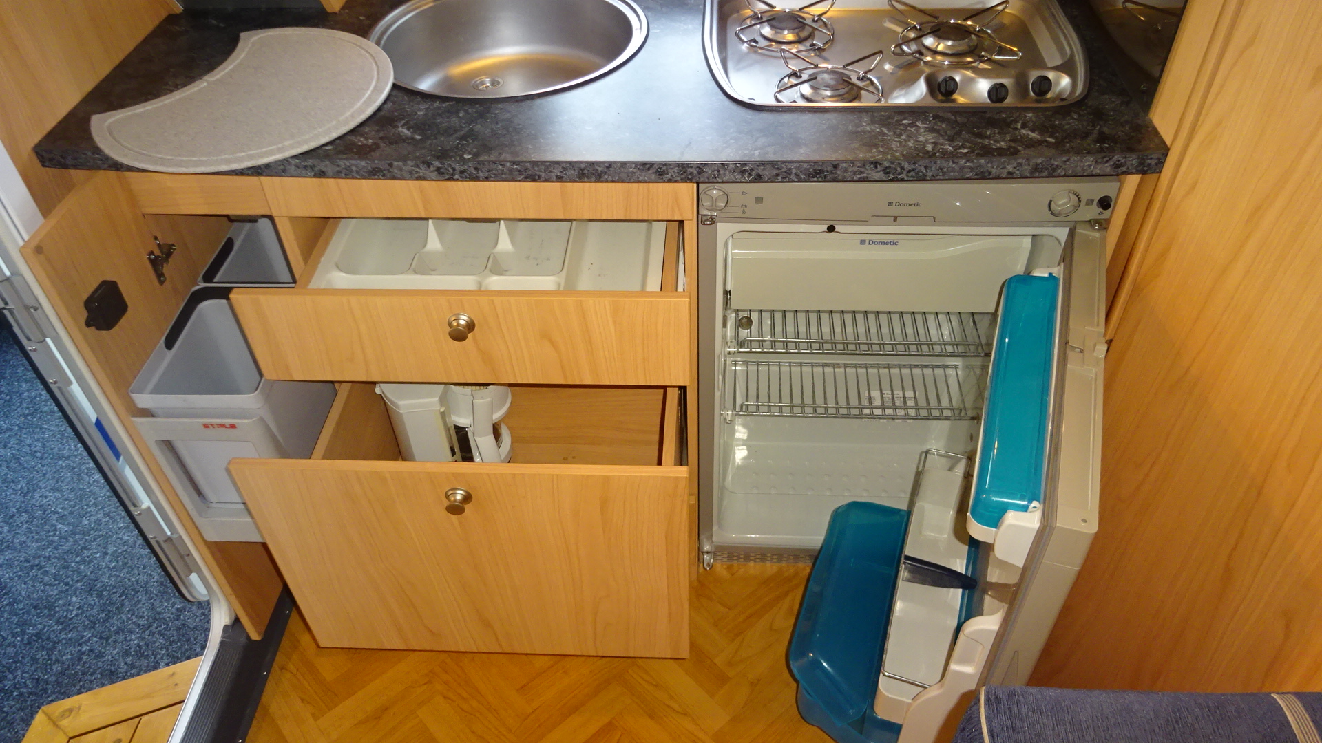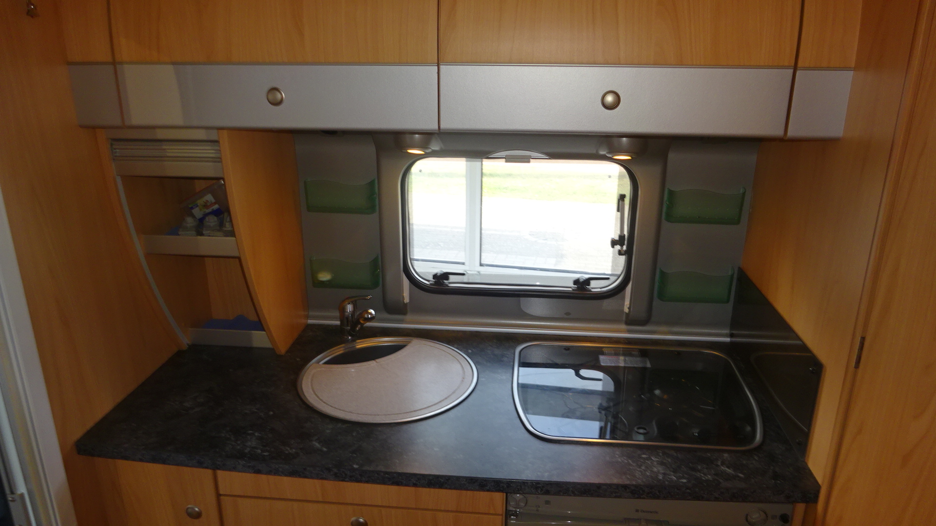 INDELING VAST BED (DWARS) MIDDENZIT en achter KEUKEN/TOILET